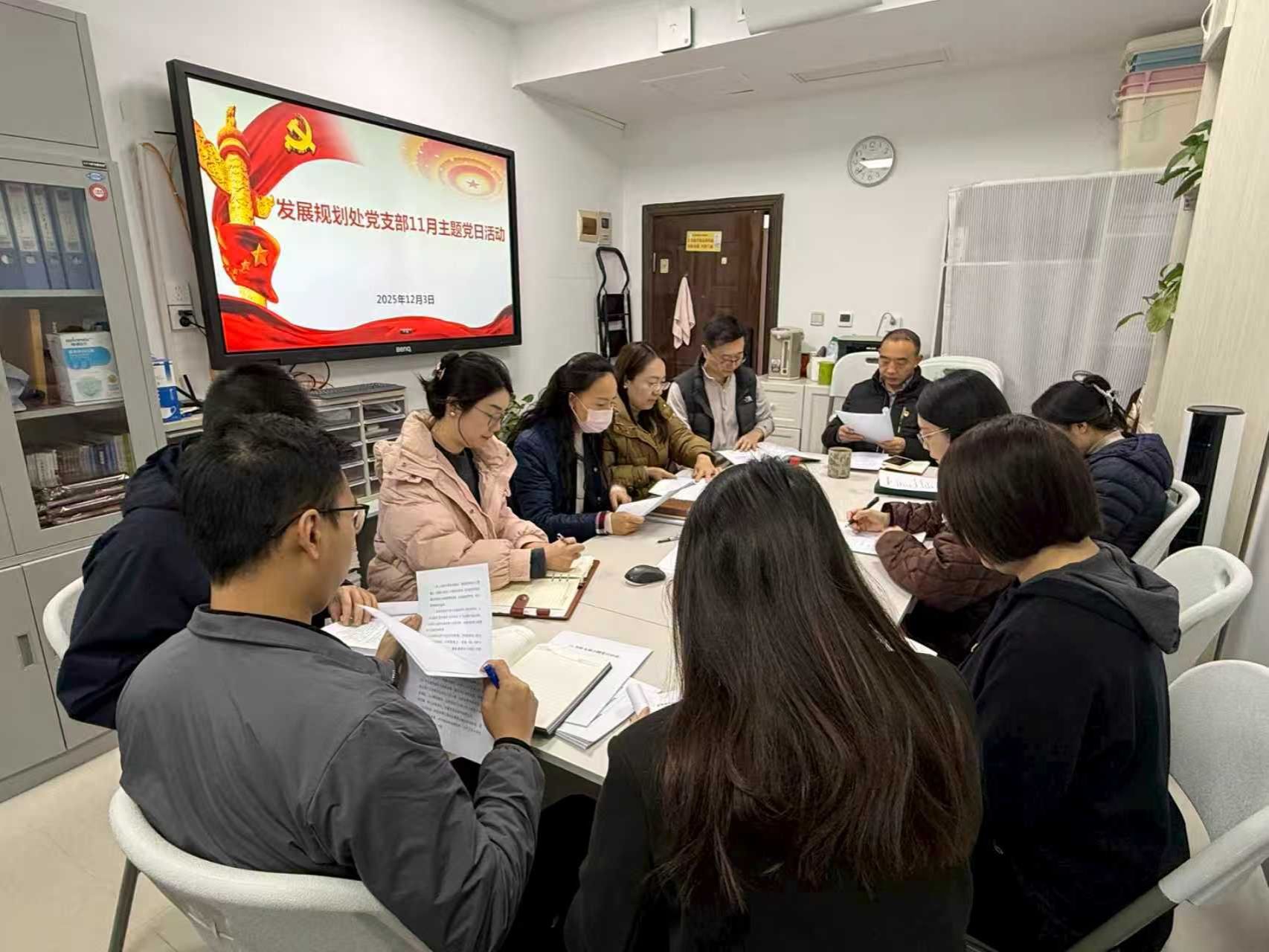 (通讯员 肖丽霞)12月3日上午,发展规划处党支部在行政楼105办公室开展11月份支部主题党日活动,支部全体党员参加会议。会议由党支部书记付海晏同志主持。