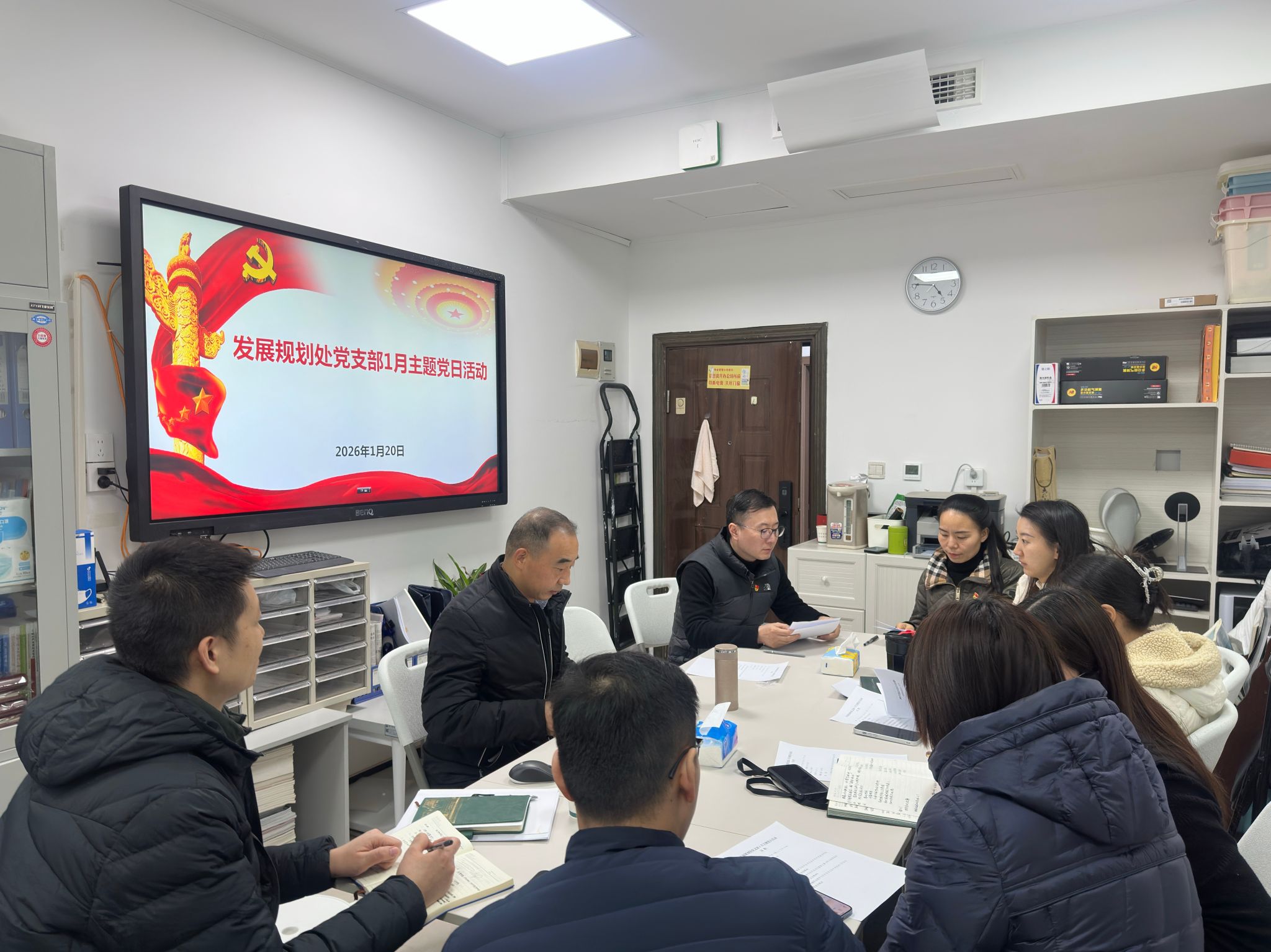 (通讯员 肖丽霞)2026年1月20日下午,发展规划处党支部在行政楼105办公室开展1月份支部主题党日活动,支部全体党员参加会议。会议由党支部书记付海晏同志主持。