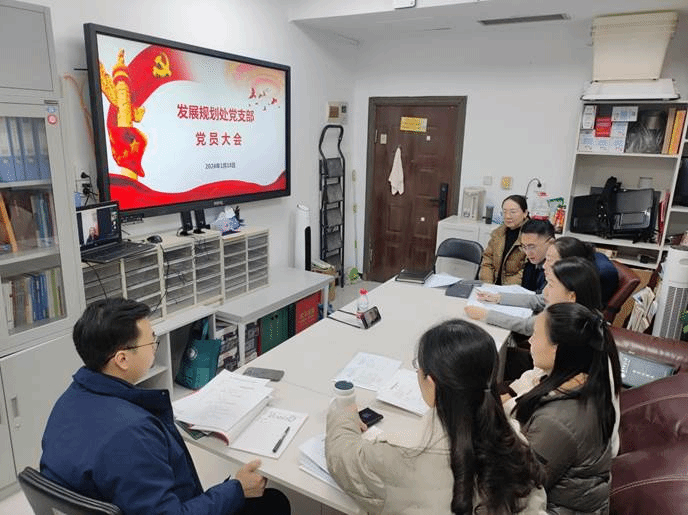 会议第三阶段,党支部开展主题党日活动,会议由发展规划处副处长熊娜同志主持。党支部纪检委员周轶楠同志传达了学校纪委近期通知要求,各位党员同志按照校党委组织部和机关党委要求,集体学习了习近平总书记重要讲话精神、中央相关工作会议精神以及《中国共产党纪律处分条例》文件等。在交流发言环节,与会党员围绕如何丰富党支部主题党日活动形式踊跃发言,从党支部结对共建、业务能力培训、党支部品牌打造等多方面为党支部的发展建言献策。